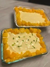 Tropical carlota with creamy mango filling and María cookie layers—cool, bright, and summer in a slice.